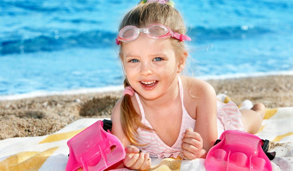 » Wallpaper Little girl with blue eyes sunbathing on the beach