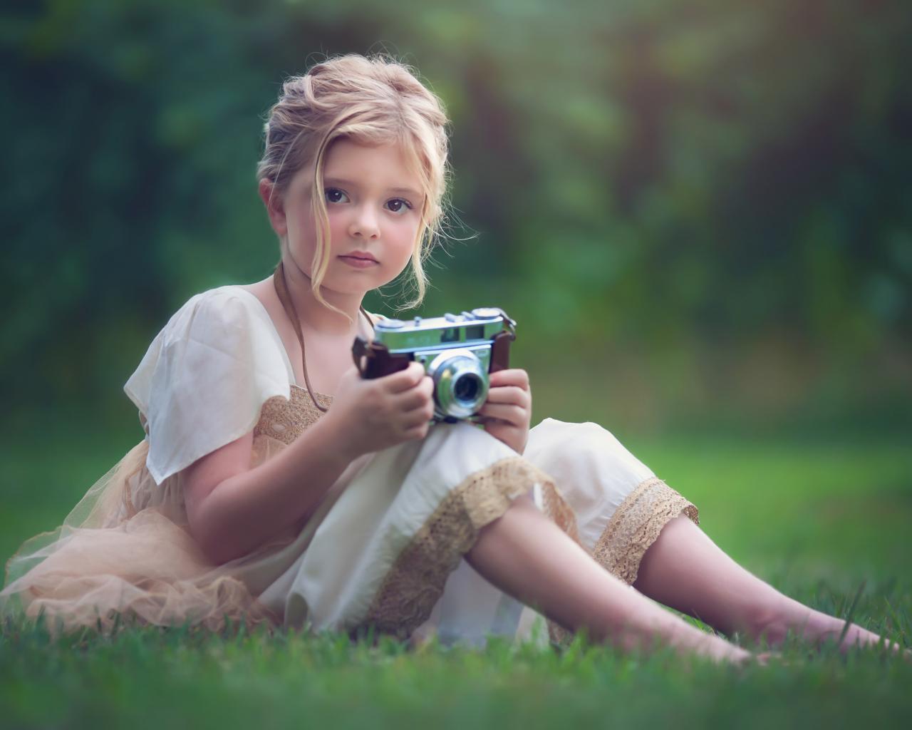 Wallpaper Little fair-haired girl with a camera in her hands
