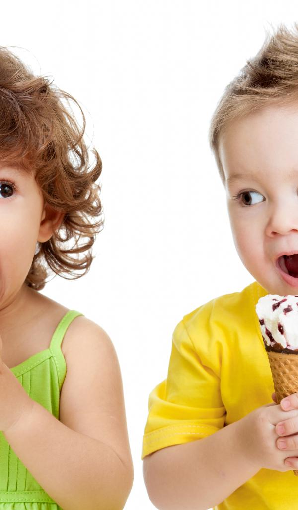 Wallpaper Little boy and girl eat tasty ice cream