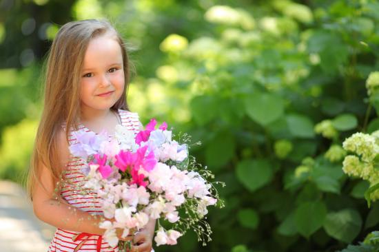 Wallpaper Light-haired girl with a bouquet of flowers in her hands