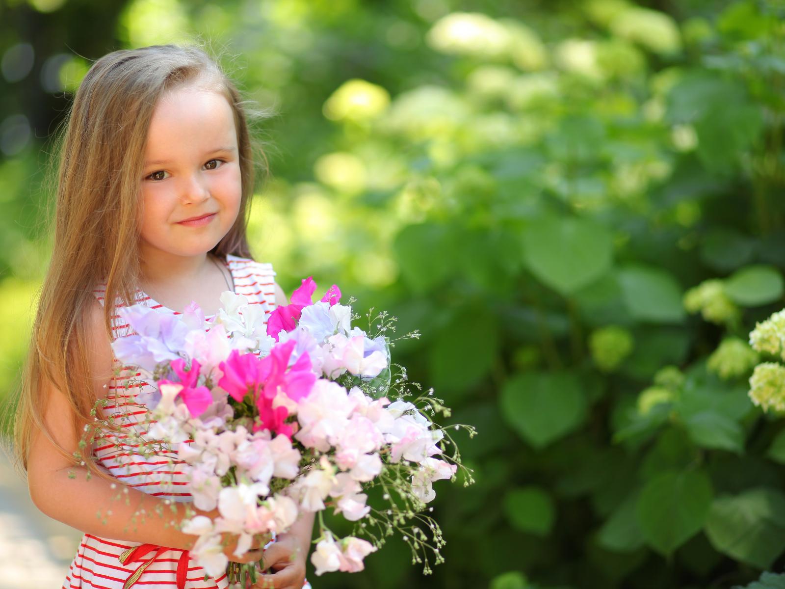 Wallpaper Light-haired girl with a bouquet of flowers in her hands