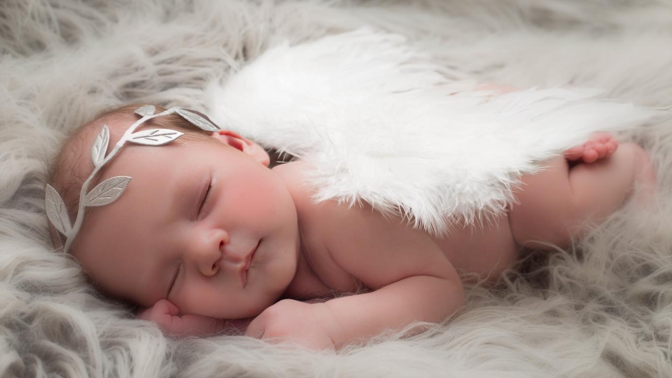 Wallpaper A small sleeping baby in a hat with ears is sleeping on the bed.