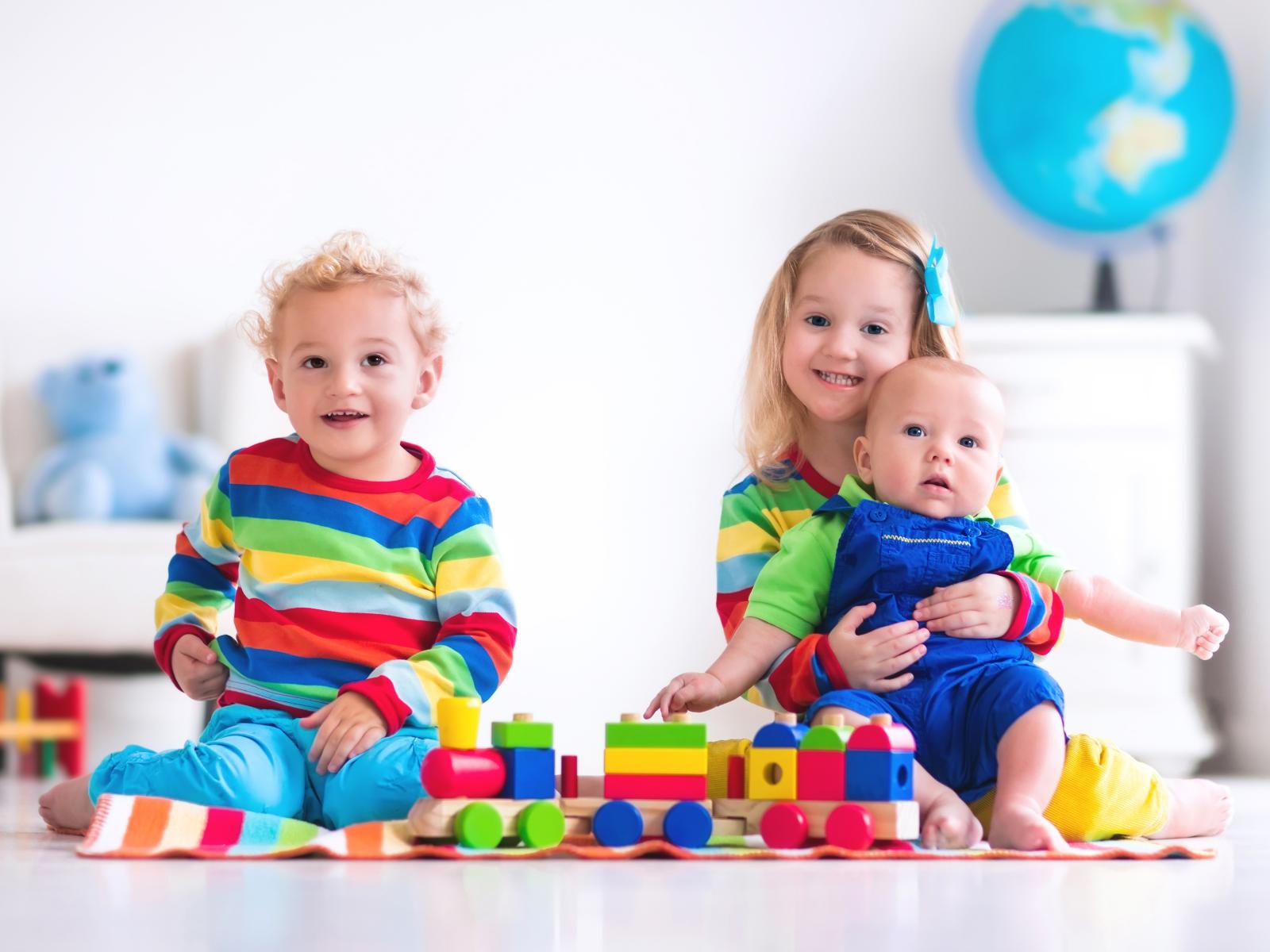 Wallpaper Three children play with a toy train