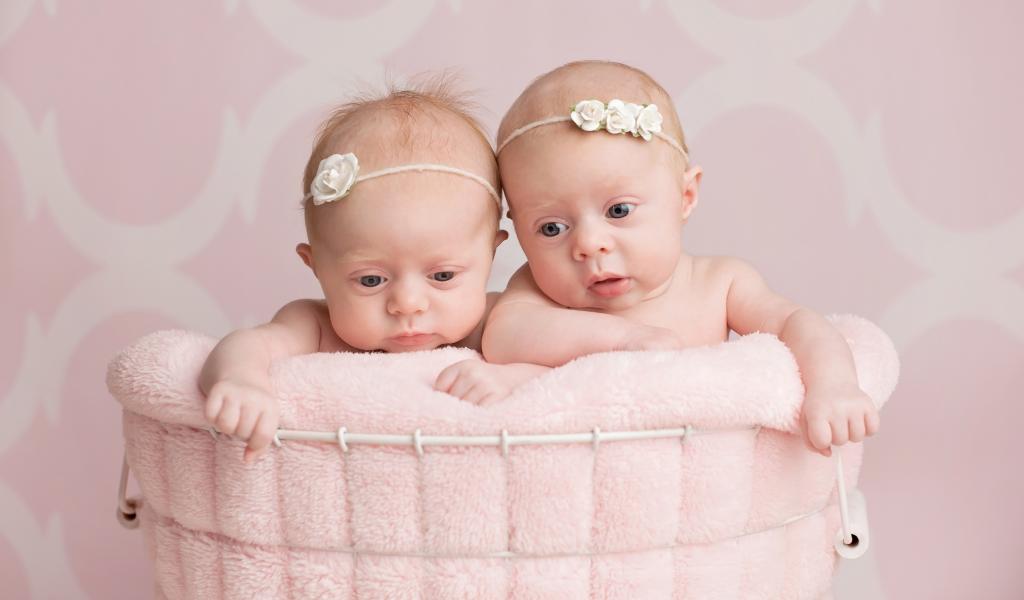 » Wallpaper Two baby twin girls in the basket