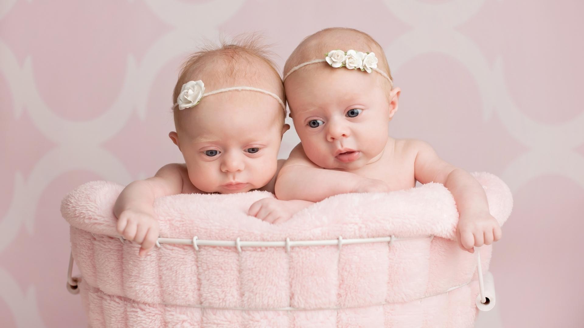» Wallpaper Two baby twin girls in the basket