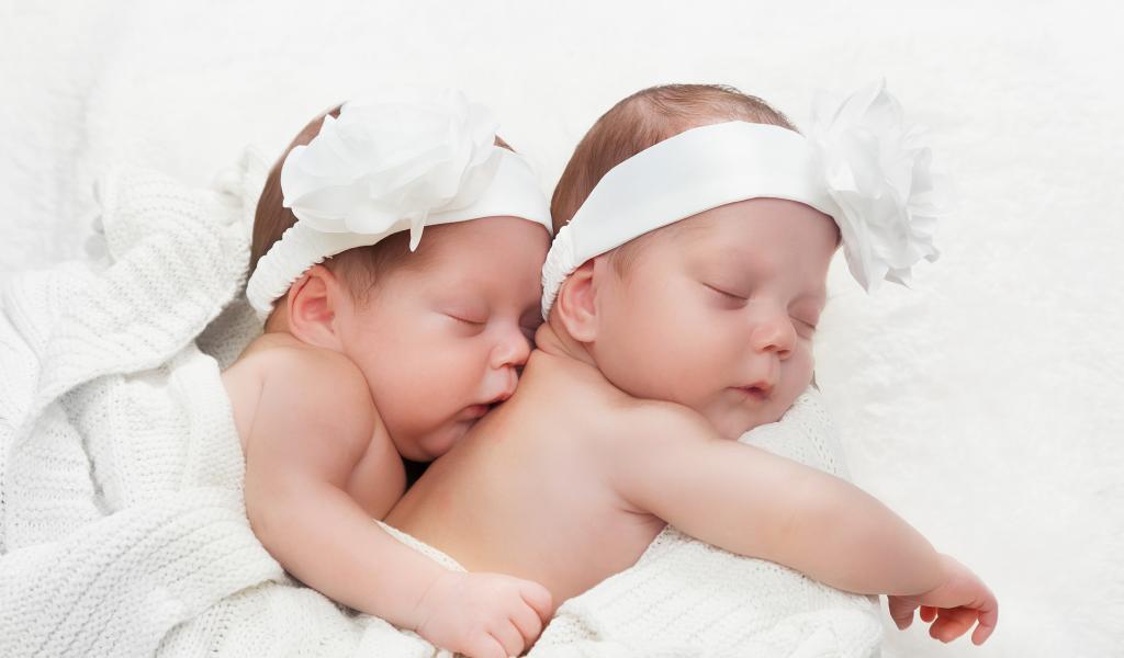 Wallpaper Two sleeping babies with big white flowers on their heads