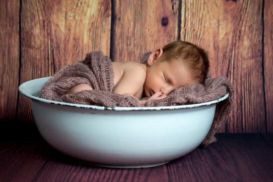Wallpaper A newborn baby sleeps in a white bowl