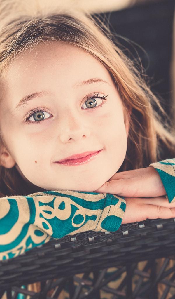 Wallpaper Smiling green-eyed girl with a white flower in her hair