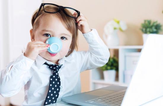Wallpaper Little boy in a business suit and with a cup