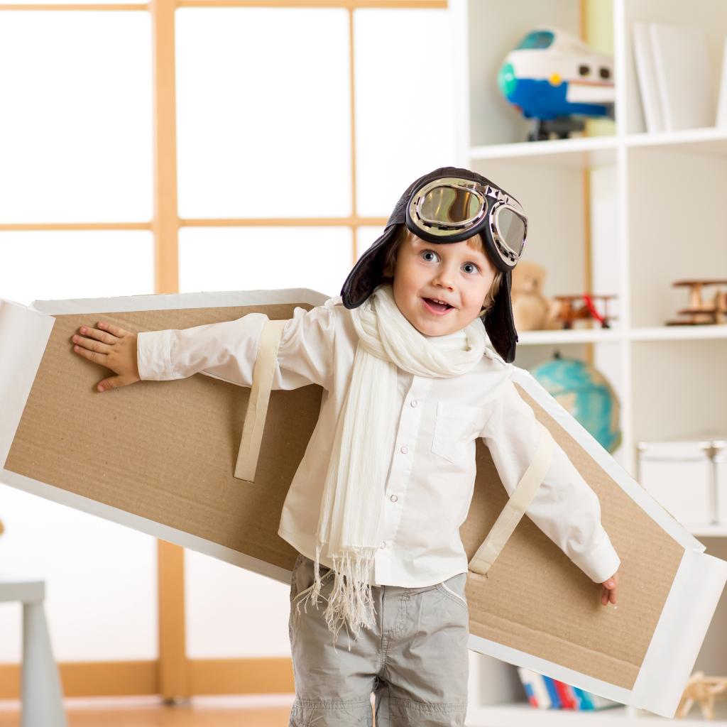 Wallpaper Little future pilot plays with the plane