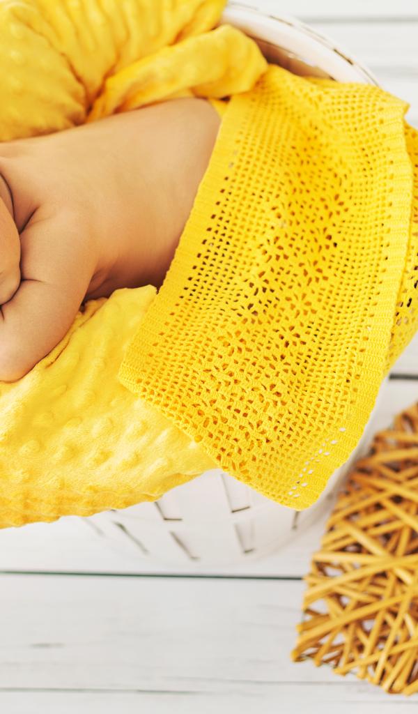 Wallpaper A baby breast sleeps on a yellow cushion with a wicker heart