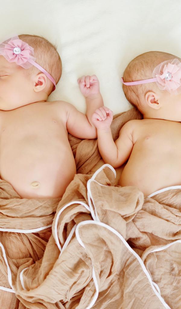 Wallpaper Two sleeping babies with pink flowers on their heads