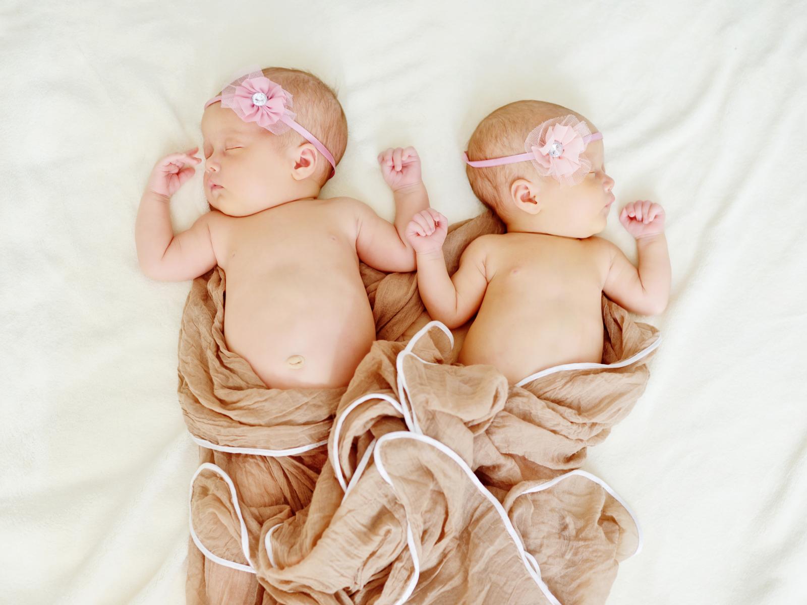 Wallpaper Two sleeping babies with pink flowers on their heads