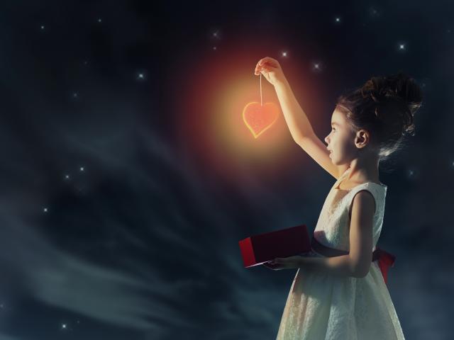 Wallpaper A girl in a beautiful white dress is holding a heart
