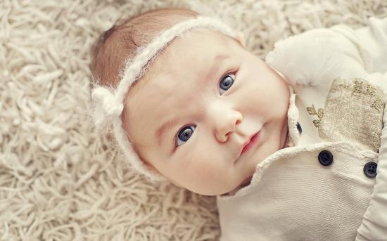 Wallpaper Beautiful blue-eyed baby with a bandage on her head