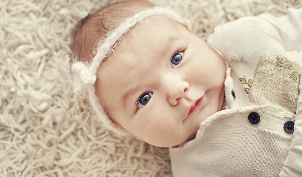 Wallpaper Beautiful blue-eyed baby with a bandage on her head