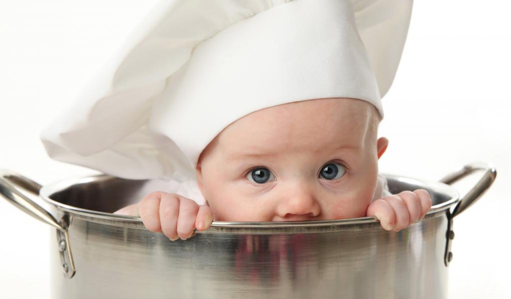 Wallpaper A small child is sitting in a large iron pan