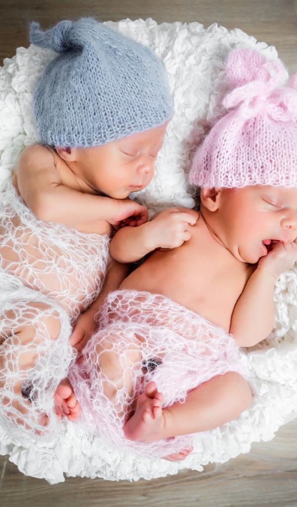 Wallpaper Two sleeping babies with pink flowers on their heads