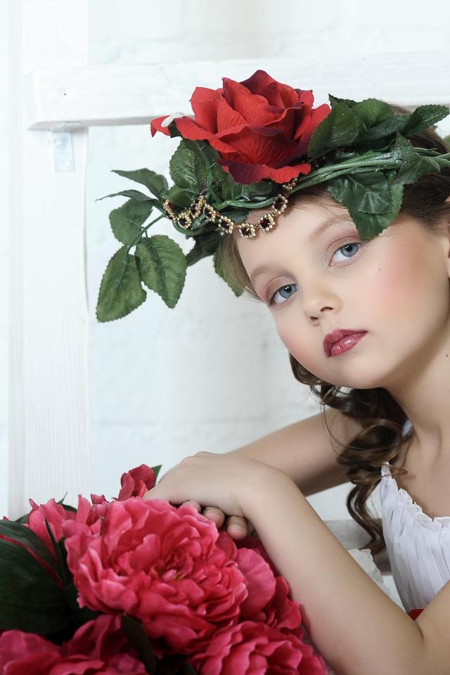 Wallpaper Beautiful little girl with a wreath of roses on her head