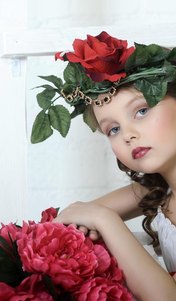 Wallpaper Beautiful little girl with a wreath of roses on her head
