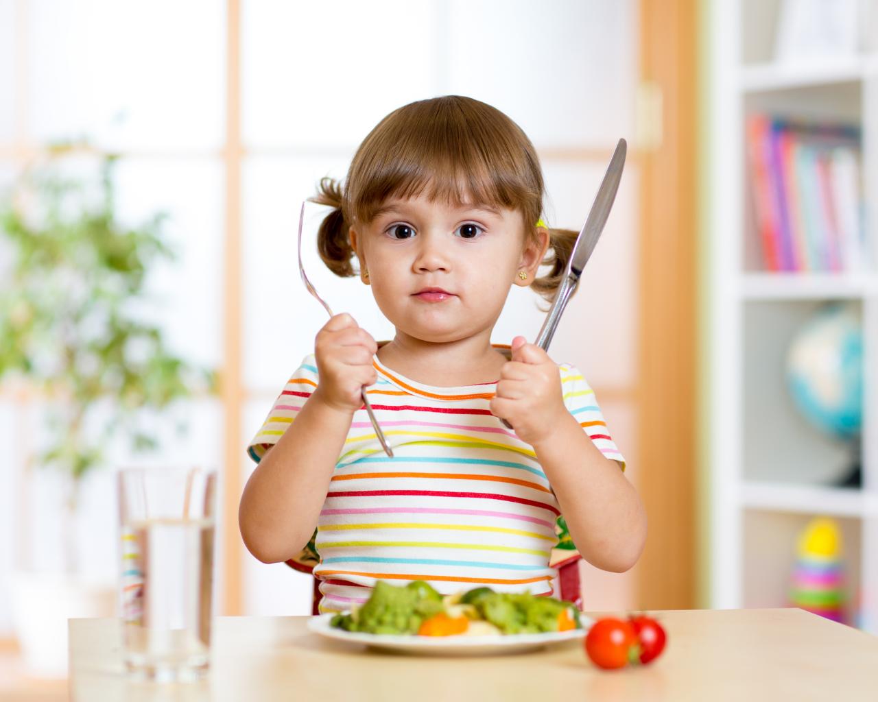 Wallpaper A little girl with cutlery and a plate
