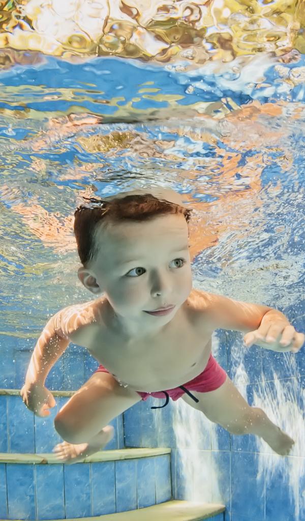 Wallpaper Little boy swims under the water in the pool