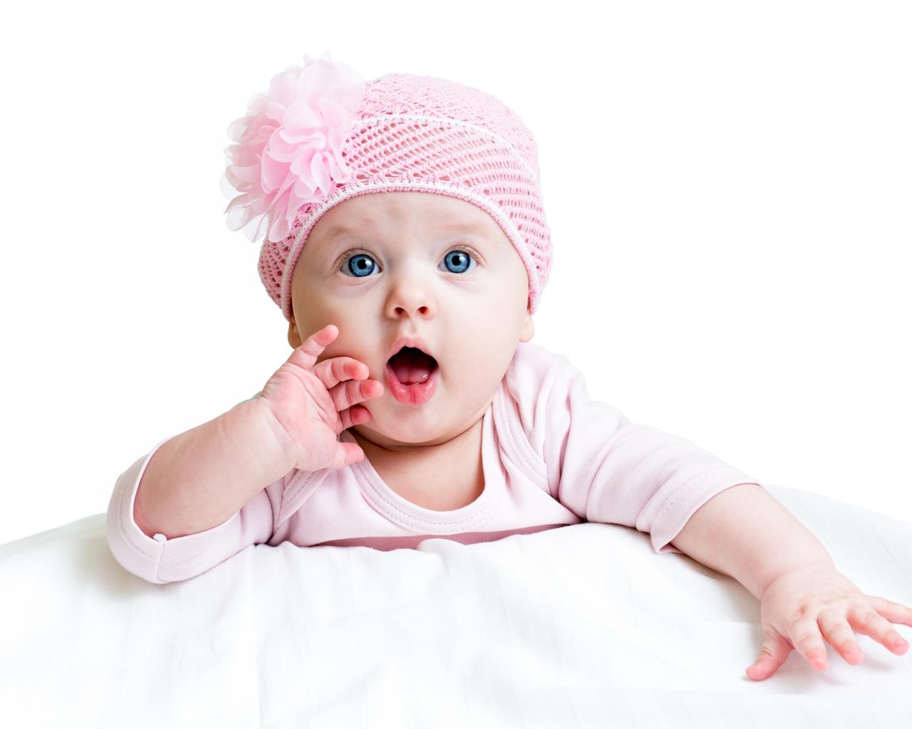 Wallpaper Nude blue-eyed girl in pink hat on white background