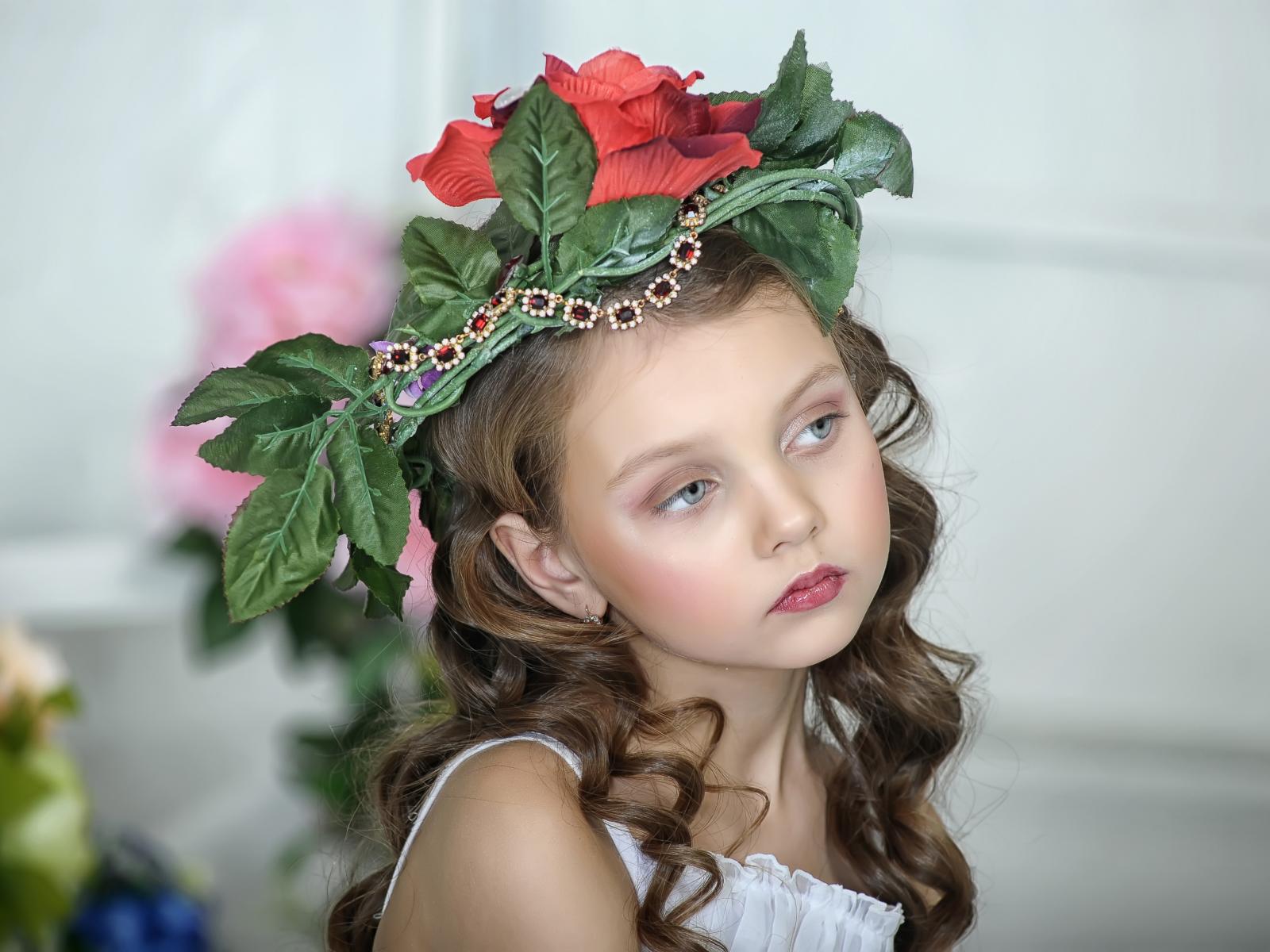 Wallpaper Beautiful little girl with ornaments on her head