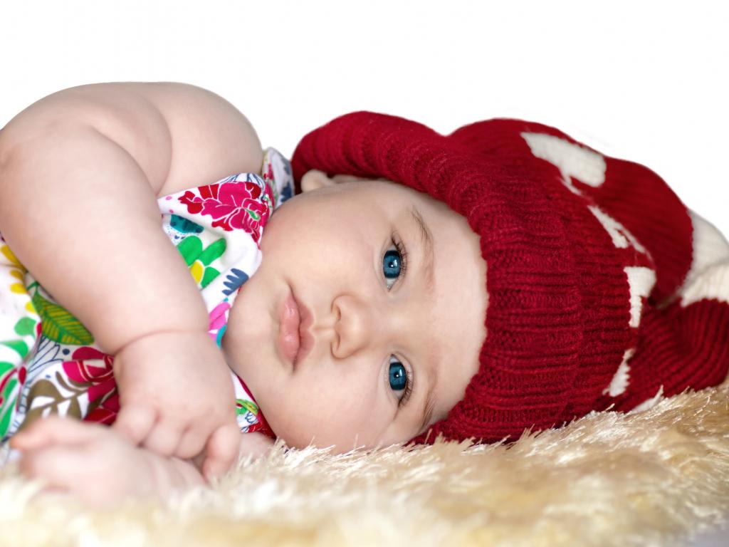» Wallpaper Little girl in red knitted hat