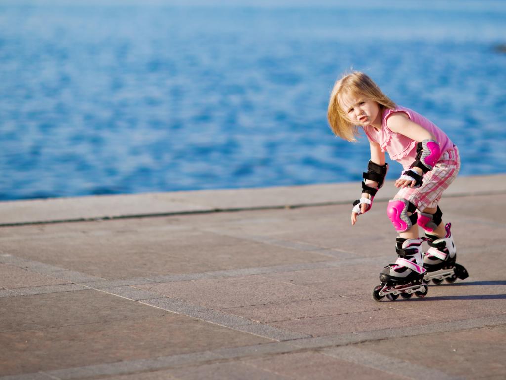 » Wallpaper Little girl skating on the coast