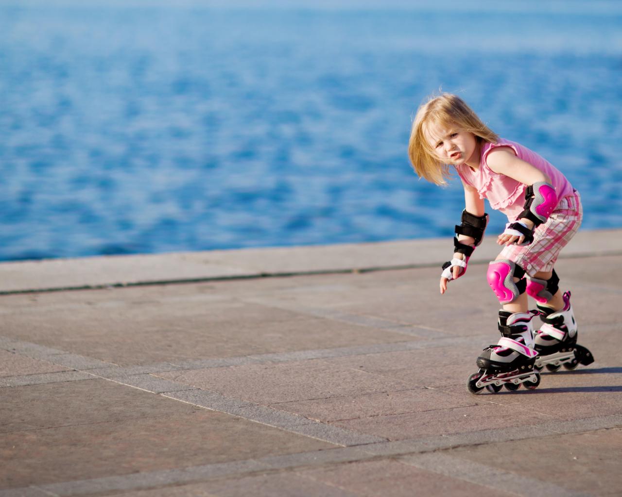 » Wallpaper Little girl skating on the coast