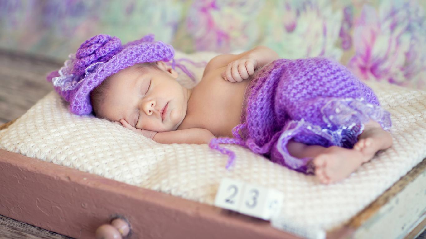 Wallpaper A little sleeping baby in a knitted purple suit