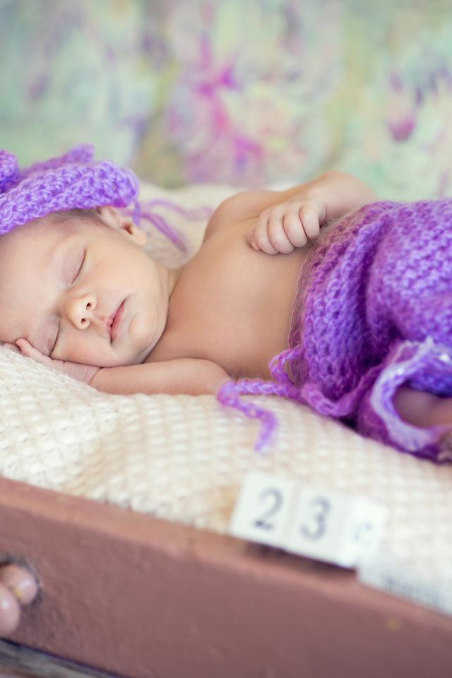 Wallpaper A little sleeping baby in a knitted purple suit