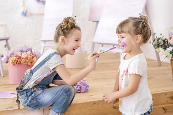 Wallpaper Two little girls play with colors