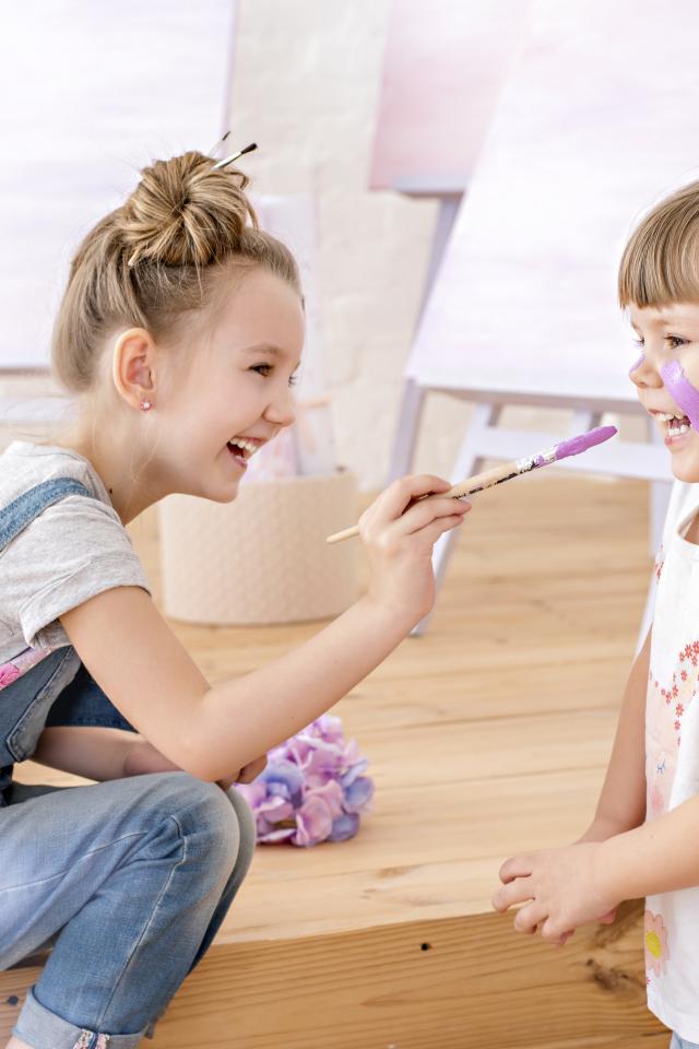 Wallpaper Two little girls play with colors