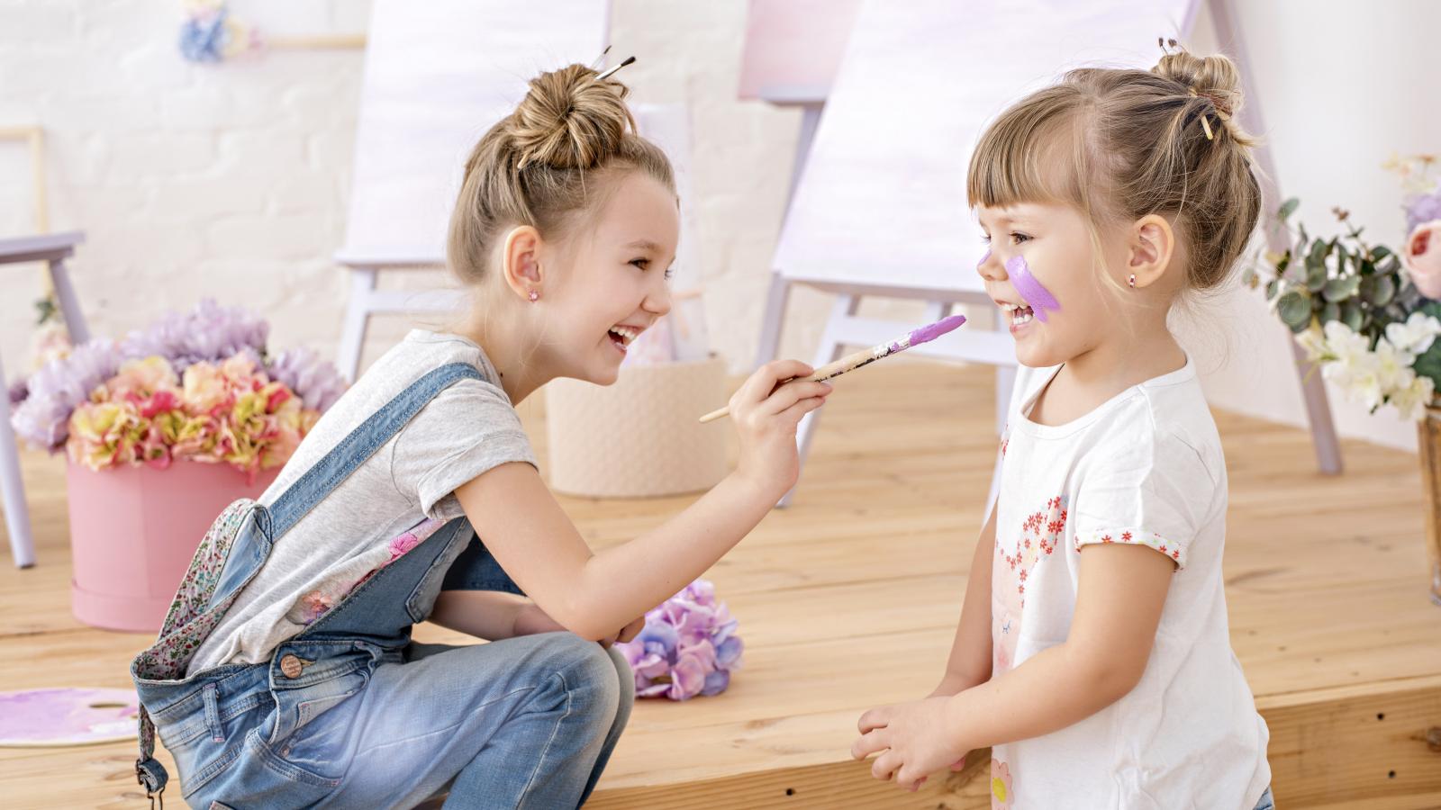 Wallpaper Two little girls play with colors