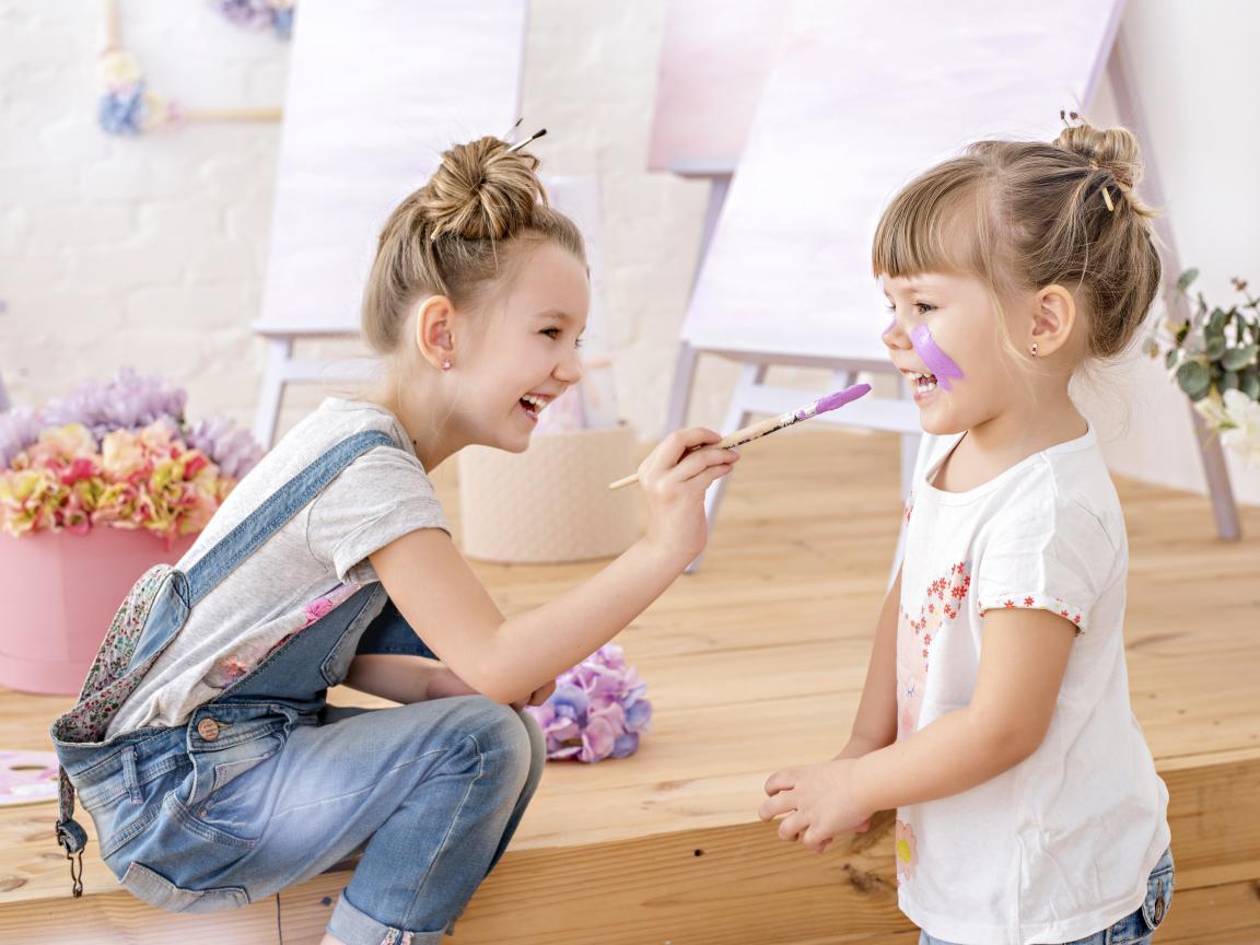 Wallpaper Two little girls play with colors