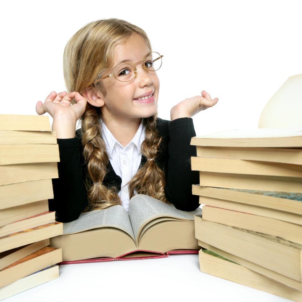 Wallpaper Little girl schoolgirl with glasses with books