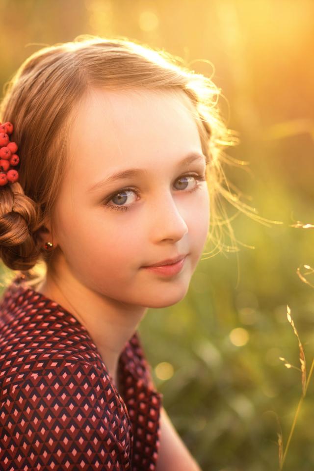 Wallpaper Beautiful little girl with a viburnum in her hair