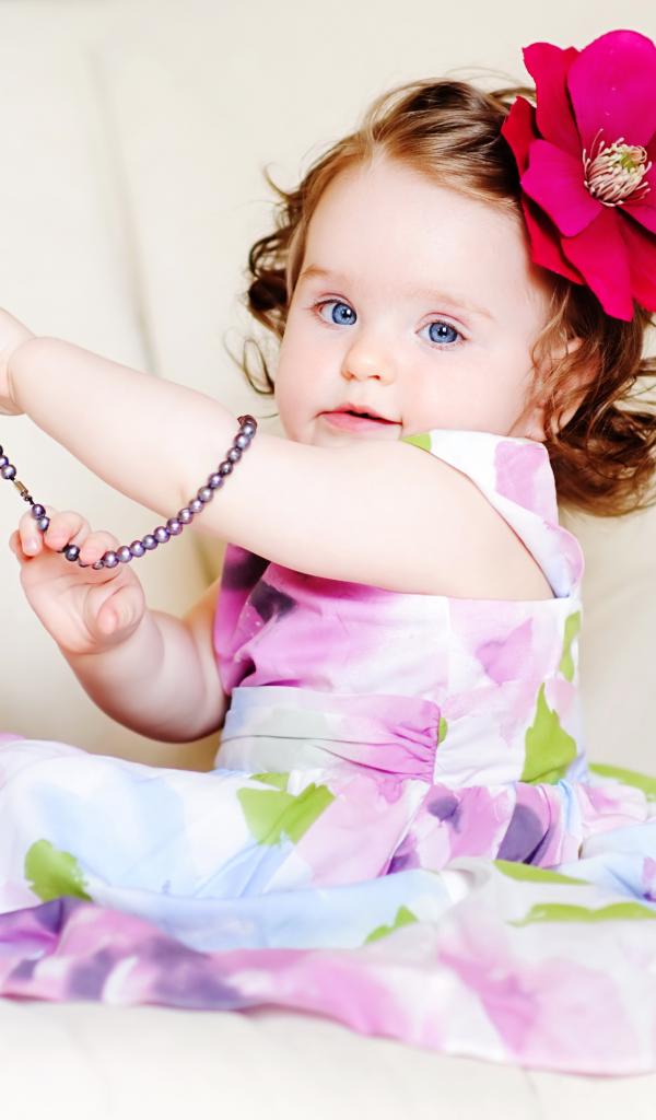 Wallpaper Little blue-eyed girl with a red flower in her hair