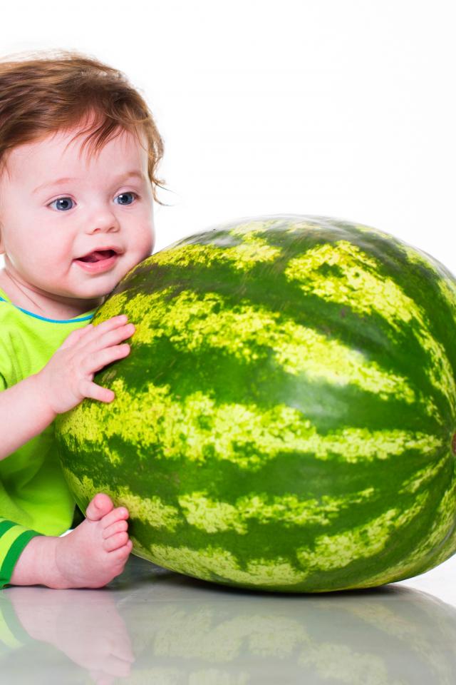 Wallpaper A small blue-eyed boy with a big green watermelon