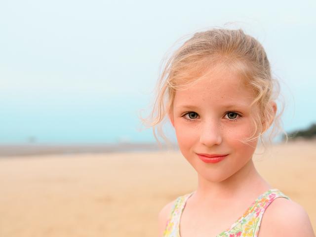 Wallpaper Little beautiful girl with freckles on her face