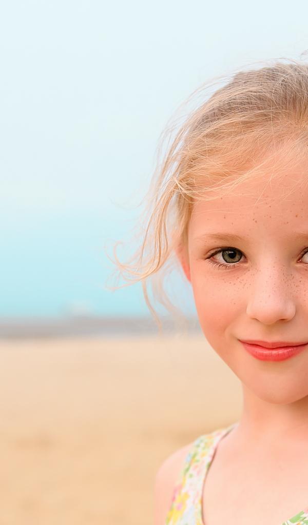 Wallpaper Little beautiful girl with freckles on her face