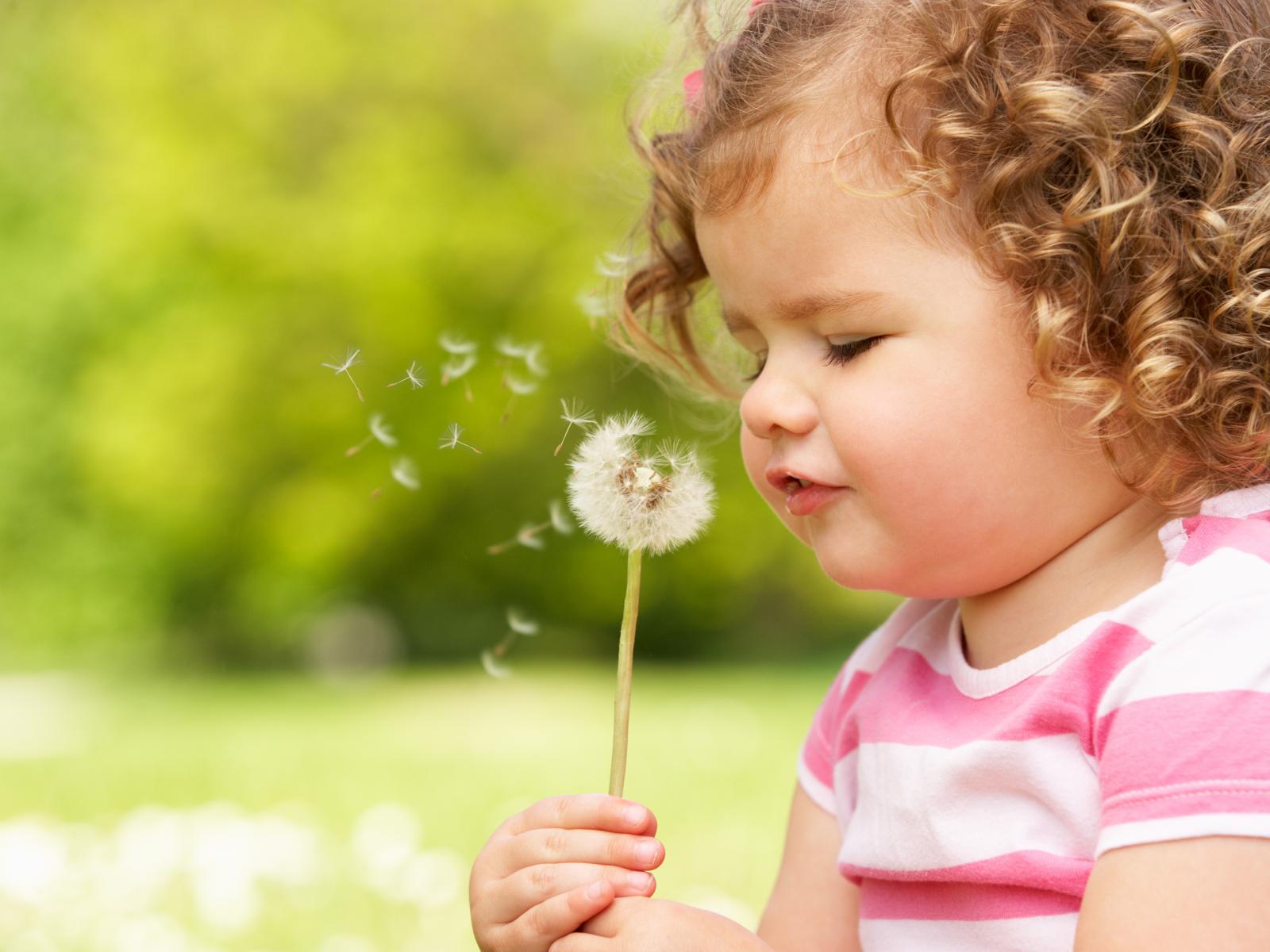 Wallpaper Little cute girl with dandelion in hands