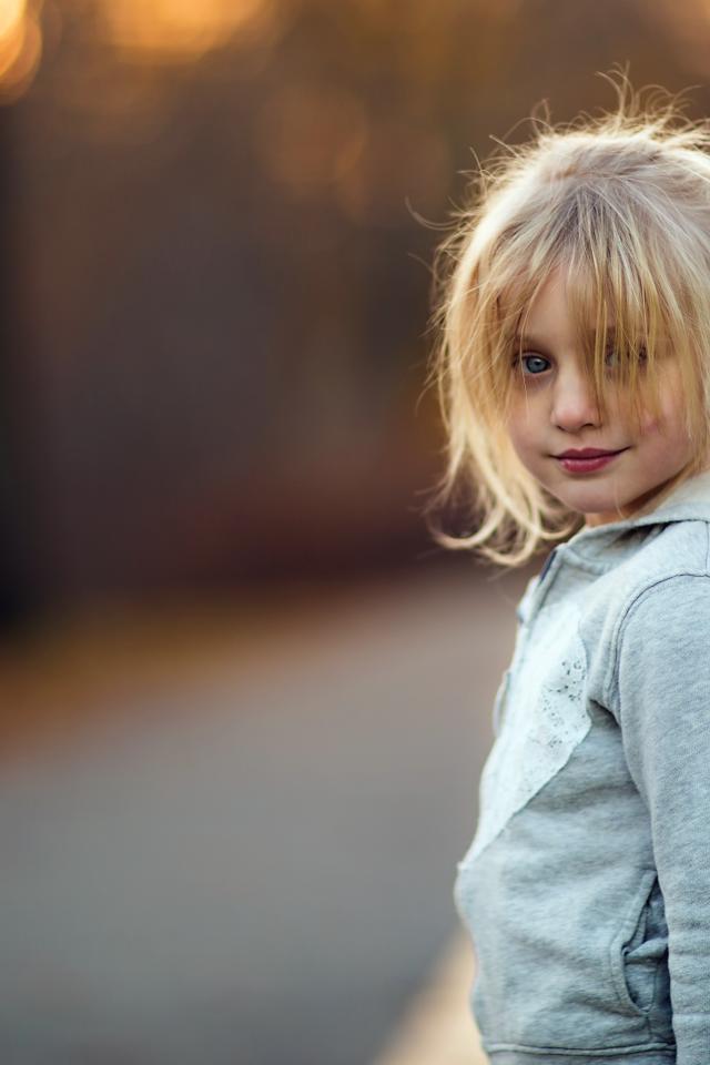 » Wallpaper Little blonde girl in gray jacket