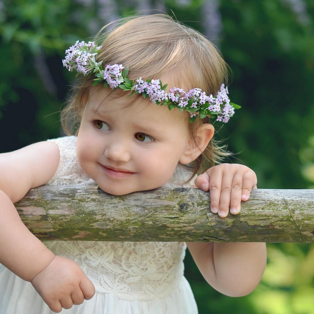 Wallpaper Little brown-eyed girl with a wreath on her head