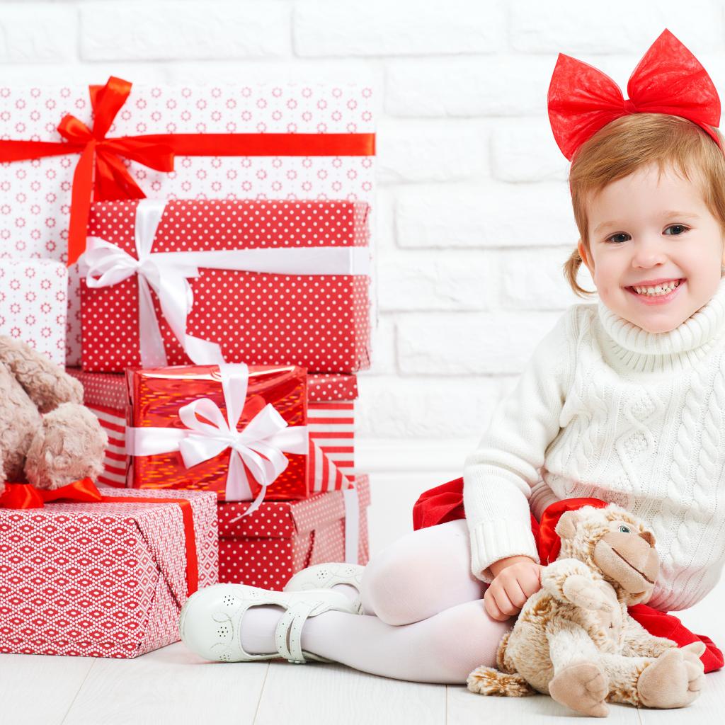 Wallpaper Little smiling girl with gifts for the new year