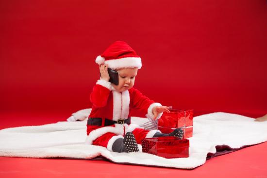 Wallpaper A small child in a New Year uniform with gifts