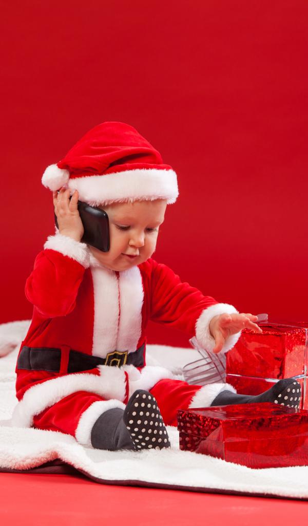 Wallpaper A small child in a New Year uniform with gifts