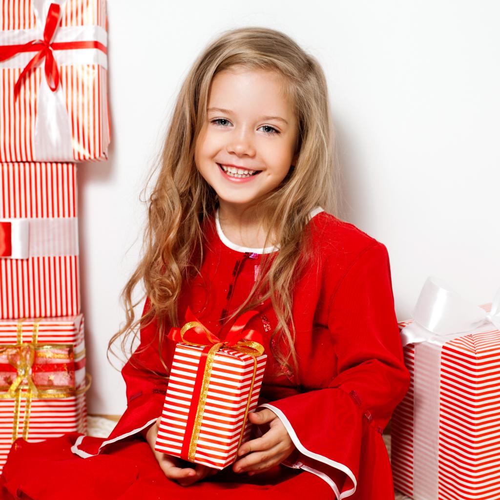 » Wallpaper Little girl with Christmas gifts